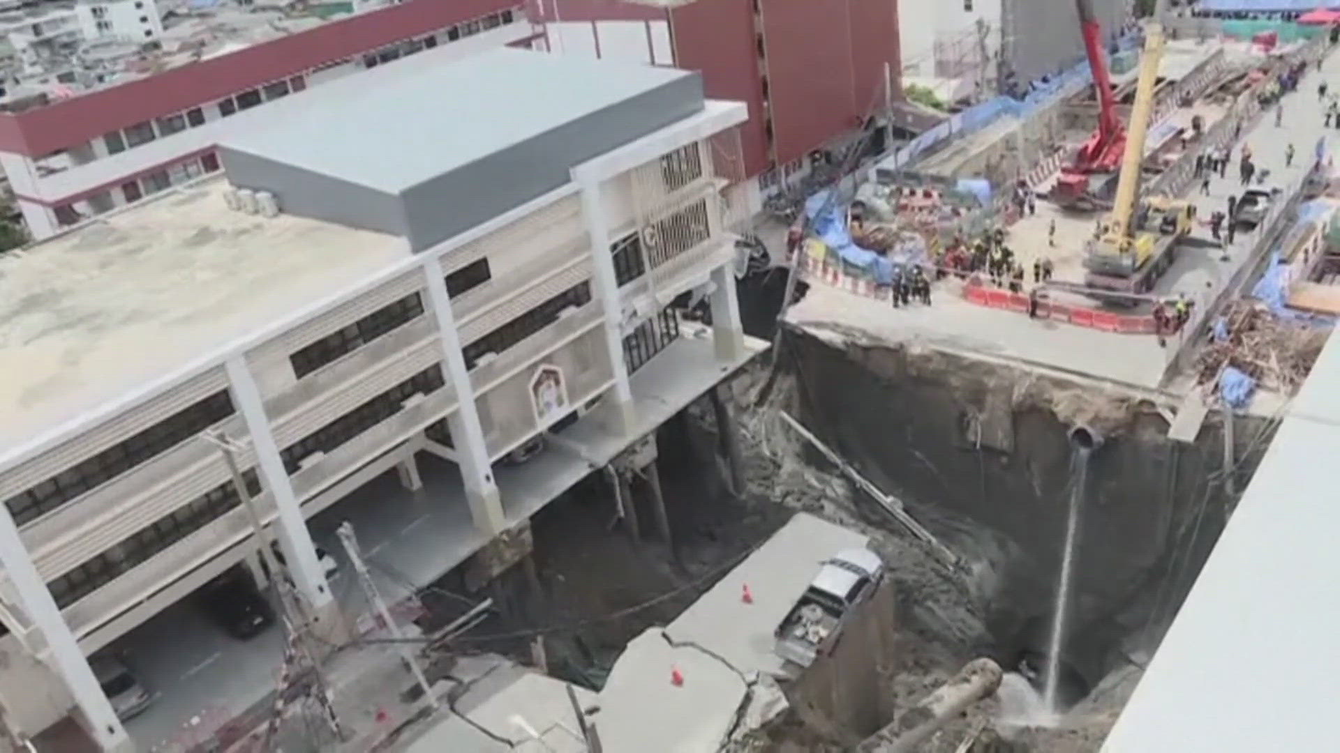 “Dirt from an underground train construction was sliding in,” Charnvirakul told reporters. “Luckily, there are no deaths or injuries.”